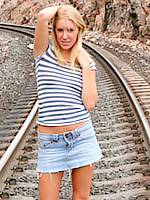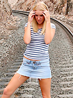 If you haven't seen Allie Pierce then you don't know what the real beauty is. This leggy babe exposes her wonderful-looking figure at the railway. She doesn't think that somebody could see her nude body...