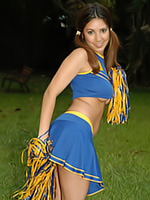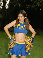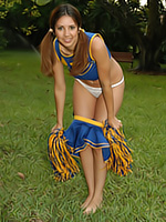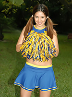 Lindy Lopez brings the sexiness in this cheerleader gallery. She's out in the grass with her hair in pigtails and she's giving you hot shots of her tits and her ass. The set is a beautiful thing because we all know that cheerleaders are the hottest things in the world.