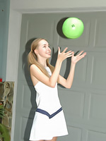 The cute girl in pigtails is wearing a dress and playing outdoors. She pulls up the bottom of the cute outfit and gives us a sexy flash of her ass and her little thong. We get to see her fabulously sexy and tight tummy and of course there's her hand down her panties.