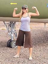 Alison Angel comes to the airport and starts posing in them in front of jet plane. Lovely girl enjoys showing her beautiful breasts and she is sure that you will love everything got.