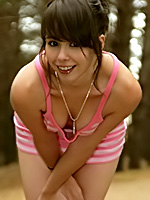 Naughty girl Ariel Rebel finds the idea of posing in her favorite pink dress right in the forest quite nice to try right now. Passionate lady not only poses in her striped pink dress but also exposes her body's delicious spots.