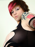 Pink-haired curvy model Dors Feline models a nice top that really shows off her tits today. There's very little to it and that's all part of the point. The tits look great and the gal will make your boner grow as she plays with her pussy and puts her ass out there for all to enjoy.