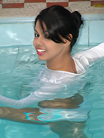 Gigi Spice is playing at a wet tee shirt contest today. She's in her tight white top and she jumps right in the pool so it gets soaked and clings to her body. She's not wearing a bra so you can basically see her tits and appreciate just how marvelous they look.