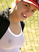 Sara Sexton looks extremely sexy in her white see-through vest. Without any hesitations pretty blonde starts posing for you. She shows her wonderful body's most attractive spots very willingly.